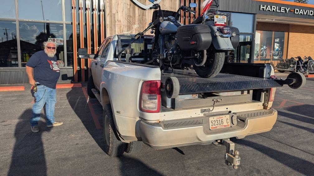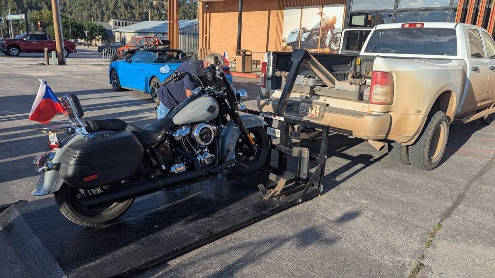 Naštěstí - zázraky se dějí. Velkou shodou náhod se v okolí pohyboval vedoucí nedaleké pobočky půjčovny Eaglerier a nemocnou motorku bleskurychle naložil na svůj truck a odvedl celou naši kolonu do svého sídla, kde nám nám promptně porouchaný stroj vyměnil za nový.