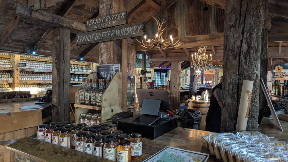 V bezprostředním sousedství Eaglerideru se další shodou okolností nacházela místní likérka Moonshine Distillery, kde speciálně pro nás uspořádali takovou malou ochutnávku místních produktů, samozřejmě s možností nákupu. Čehož jsme rádi využili.