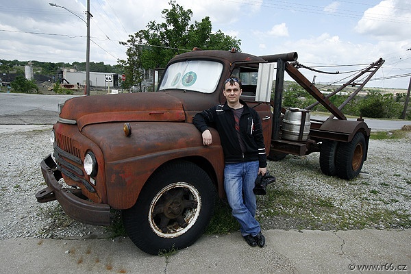 O pár hodin později a několik mílí dál jsme dorazili do města Galena v Kansasu proslulém starou bezvadnou benzinkou 4 Women on the Route (4 ženy na routce). Když tohle místo a staré zrezivělé odtahové auto "Tow tater" viděli kluci od Pixaru a Disneyho, inspirovali se pro vytvoření charakteru Buráka v oscarovém filmu Auta. Benzina v Galeně je také skvělým místem, kde se můžete zastavit a užít si suvenýry Route 66, historii a klasické jídlo od amerických benzínek. Zapamatujte si – tohle je místo, kam si můžete zajít, pokud si chcete pochutnat na skvelém hamburgeru. Žádný předražený prefabrikát, jen to nejlepší středozápadní hovězí. Tady jsme se také setkali s Deanem "Crazy Leg (Šílenou nohou)" Walkerem, skvělým svérázem schopným otočit nohy o téměř 180 stupňů.