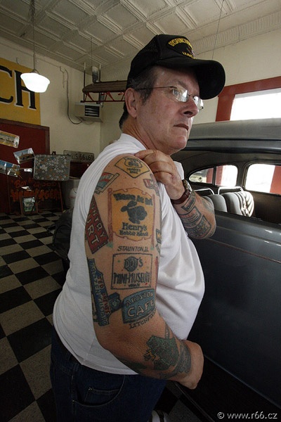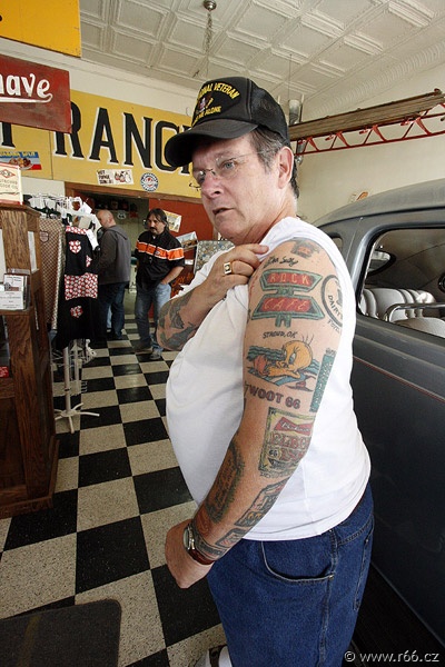Few hours later and further down the road we arrived in Galena, Kansas, with an old fancy gas station 4 Women on the Route. This was where the lads from Pixar and Disney saw the old rusty tow truck "Tow tater" that inspired them for the "Tow Mater" character in the Oscar-winning film "Cars". It is a great spot to stop by and enjoy 66 collectables and history with classic American gas-pumps food. For the record – this is the place to go if you want to eat a tasty hamburger! No overpriced prefabricate, only the best Midwestern beef. Here we met Dean "Crazy Leg" Walker, an awesone individuality capable of turning his feet by almost 180 degrees.