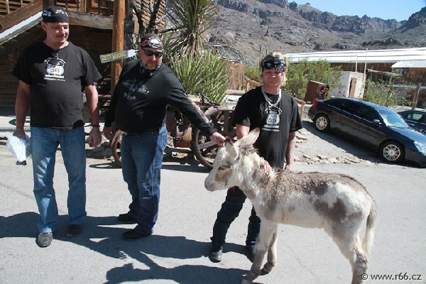 Následovala oblíbená "horská prémie", čili přejezd průsmyku Sitgreaves a nádlený sešup do bývalého zlatokopeckého městečka Oatman, kde to na vás dýchne romantikou divokého západu a vůní trusu volně pobíhajících polodivokých a poloochočených oslů.
