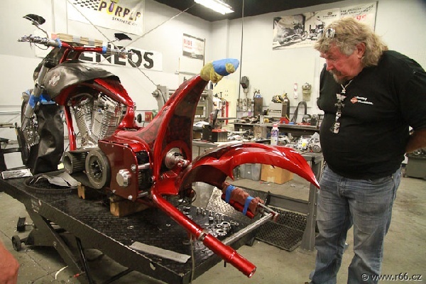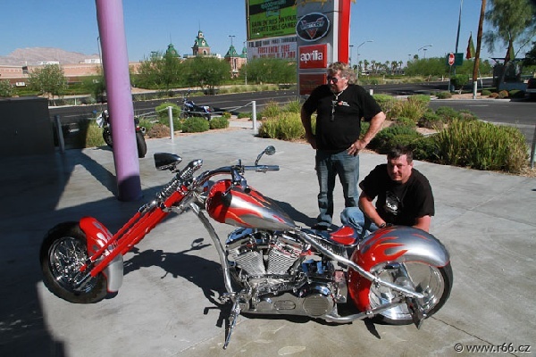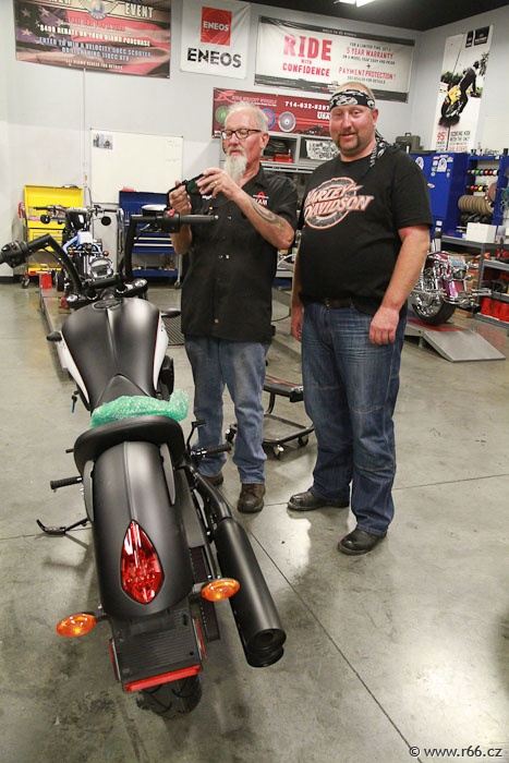 Ještě při příjezdu stíháme dvě motozastávky: První u prodejce pozoruhodných amerických motocyklů značky Victory. Zde se též staví světově známé speciální motocykly a jejich tvůrci jsou považováni za umělce. Měli jsme možnost nahlédnout přímo do dílny a on-line (čili na vlastní oči) sledovat práci Mistrů.