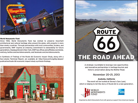 Velké pocty se dostalo České asociaci Route 66! Obdrželi jsme pozvání na konferenci o Route 66, kterou pořádá Světový fond pro ochranu památek (World Monuments Fund).