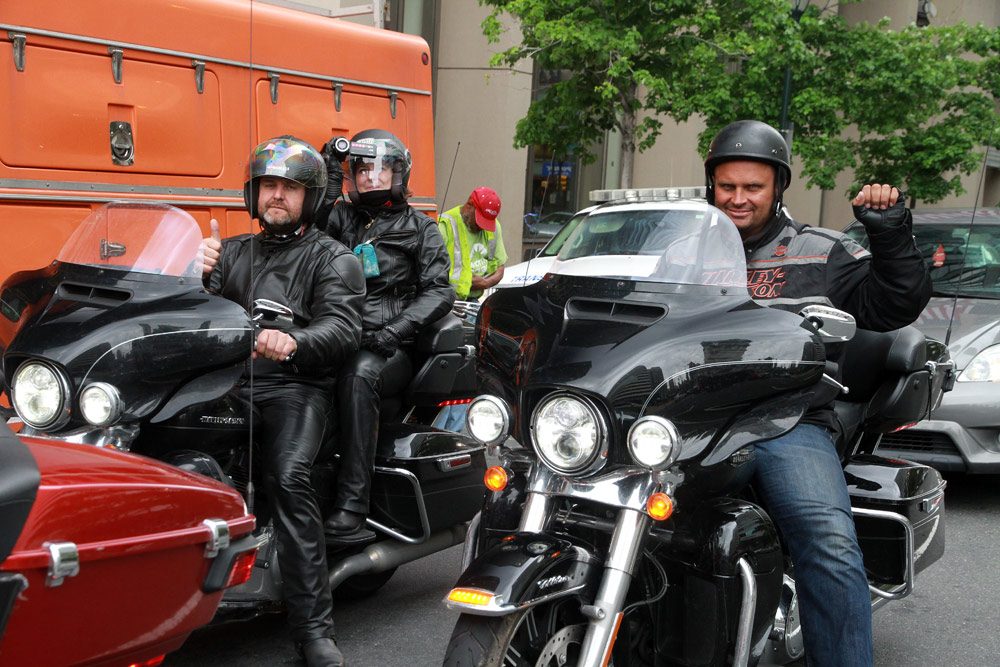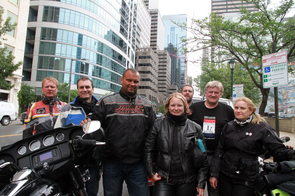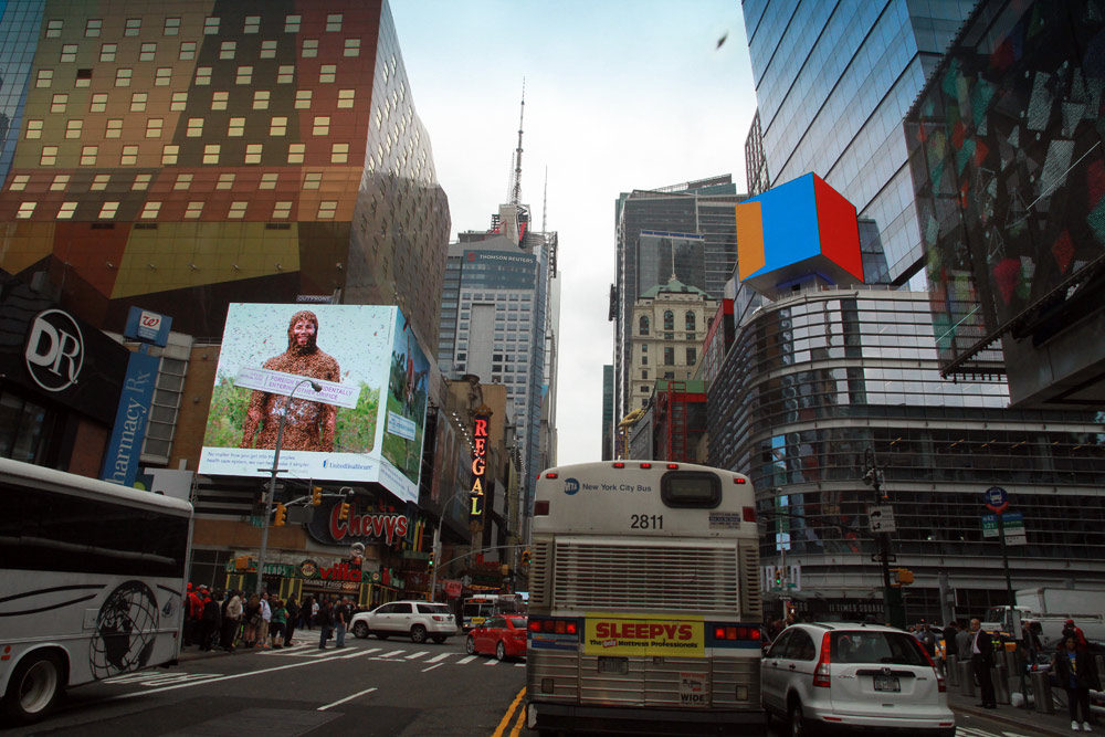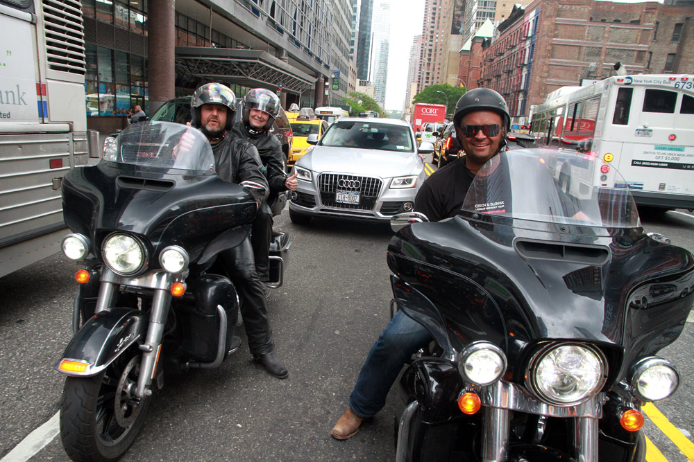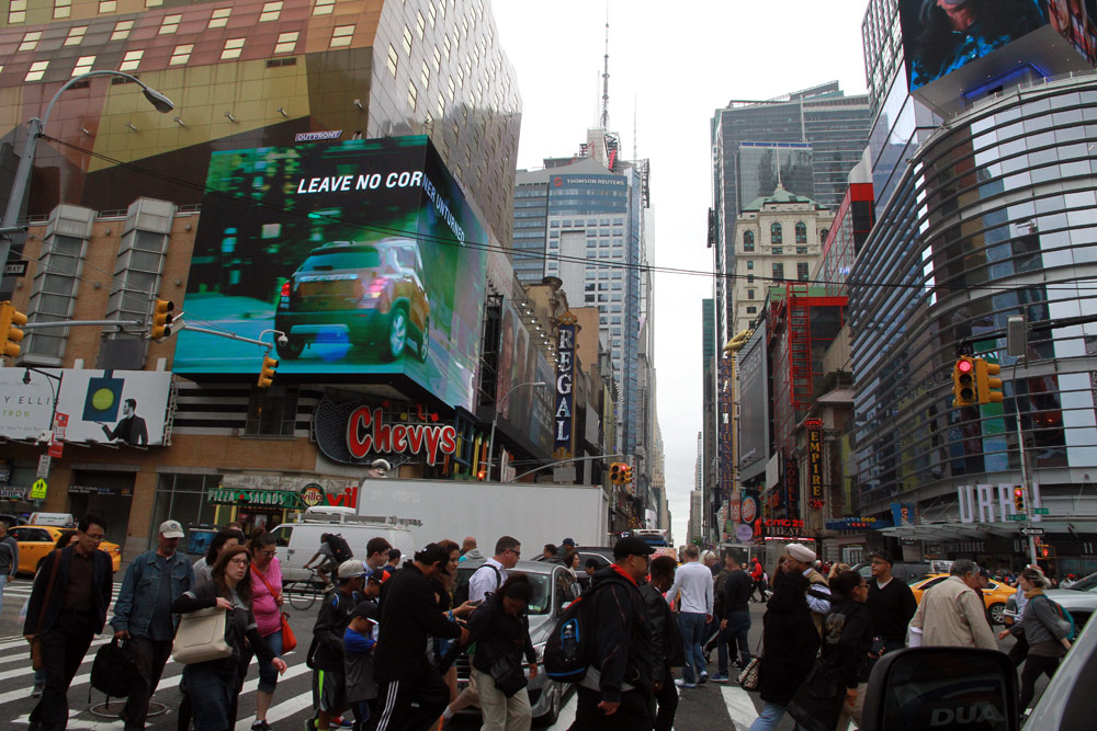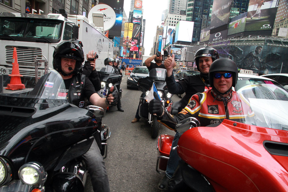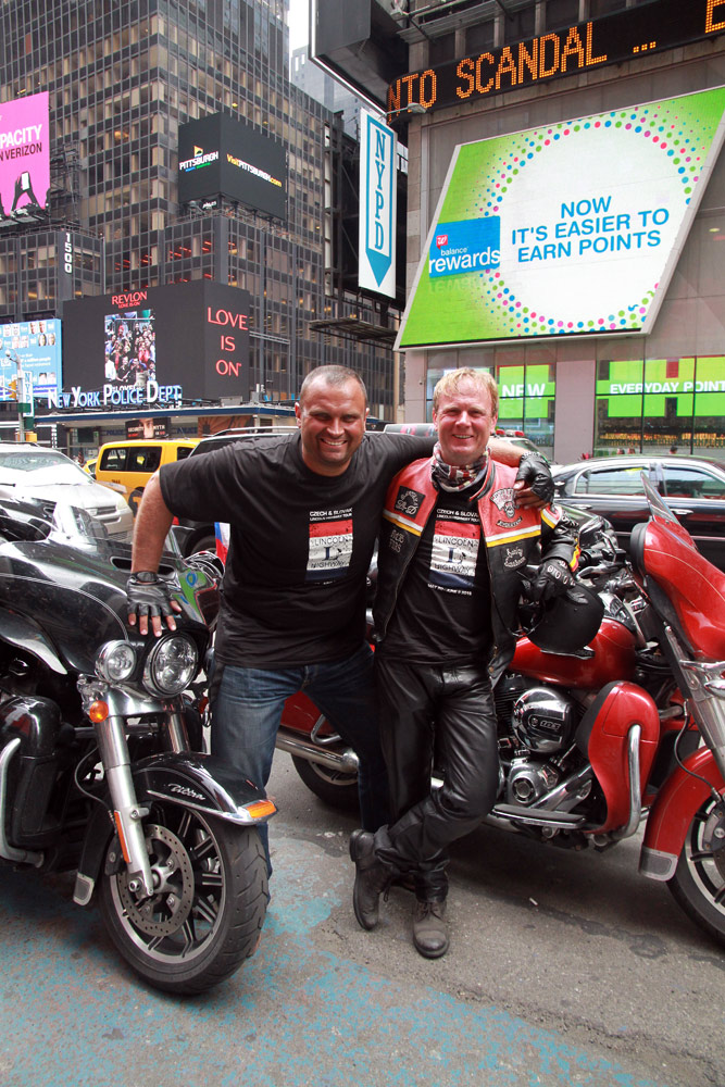 I když průjezd New Yorku nebývá zrovna snadnou záležitostí, dnes šlo vše relativně hladce. Dokonce jsme na Times Square našli i vhodné místo k zaparkování našich vozidel a mohli se dostatečně věnovat pózování před kamerami a fotoaparáty. A zřejmě jsme na tom velkém „rynku“ působili tak exotickým dojmem, že nás kolemjdoucí newyorčané žádali o společné snímky, až jsme skoro začali přemýšlet o tom, že bychom se touto činností mohli docela slušně živit :).