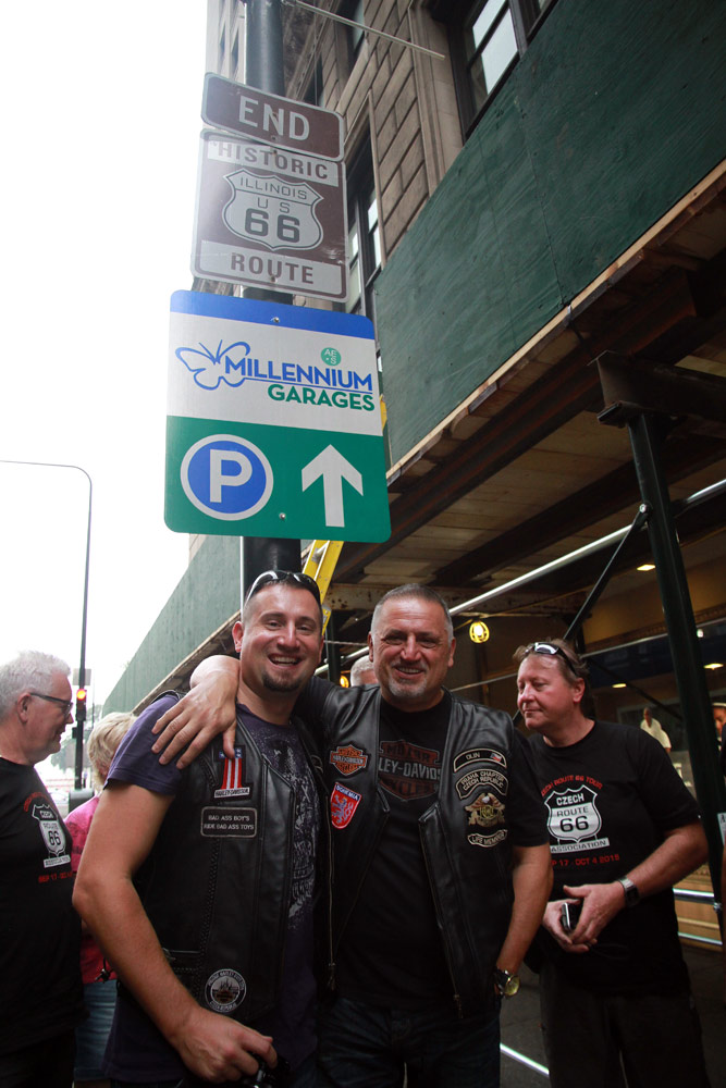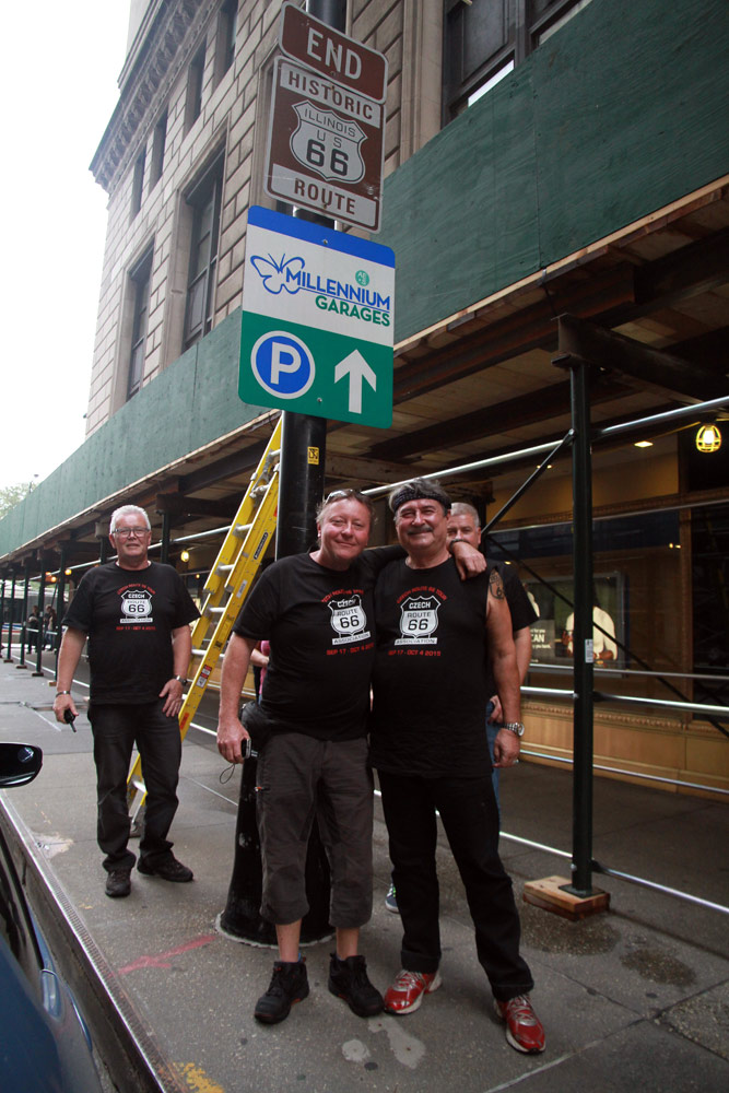 Z Wisconsinu jsme se pak přesunuli zpět do Chicaga. Tam jsme v euforické náladě (a za plného provozu) zapózovali na samém začátku Route 66, čímž naše velká cesta vlastně oficiálně začala.