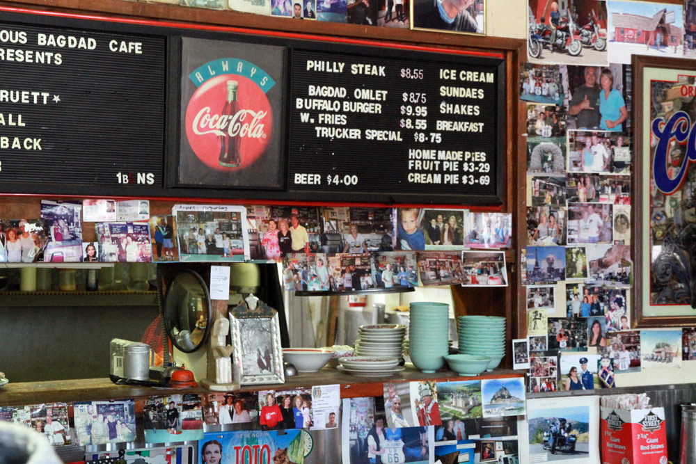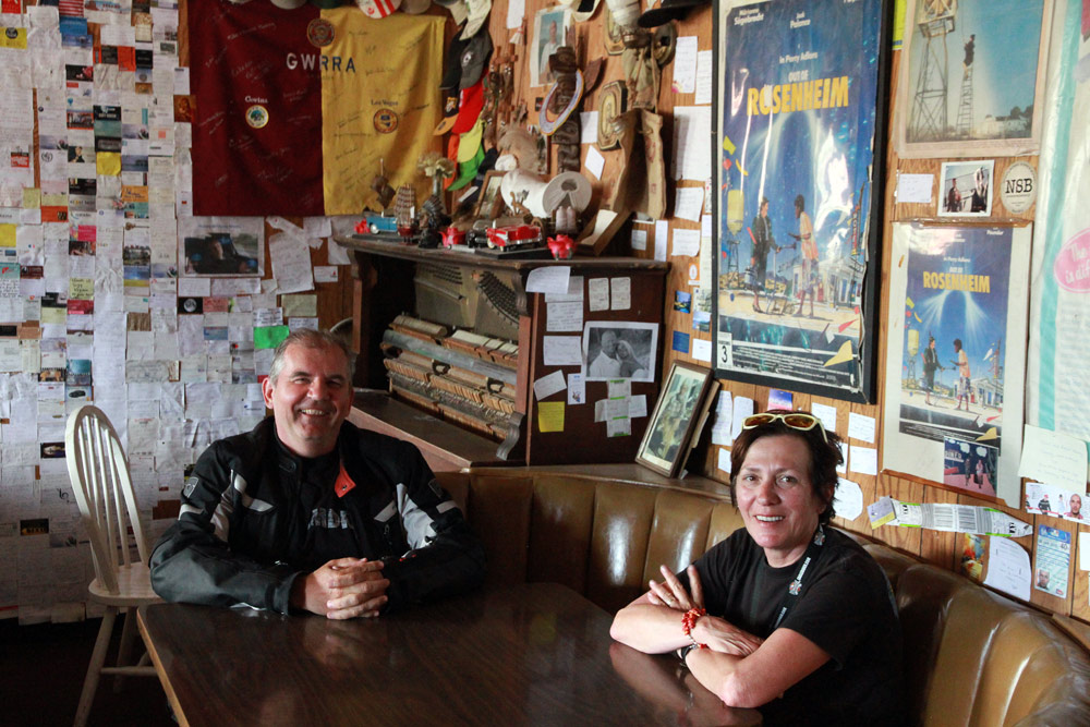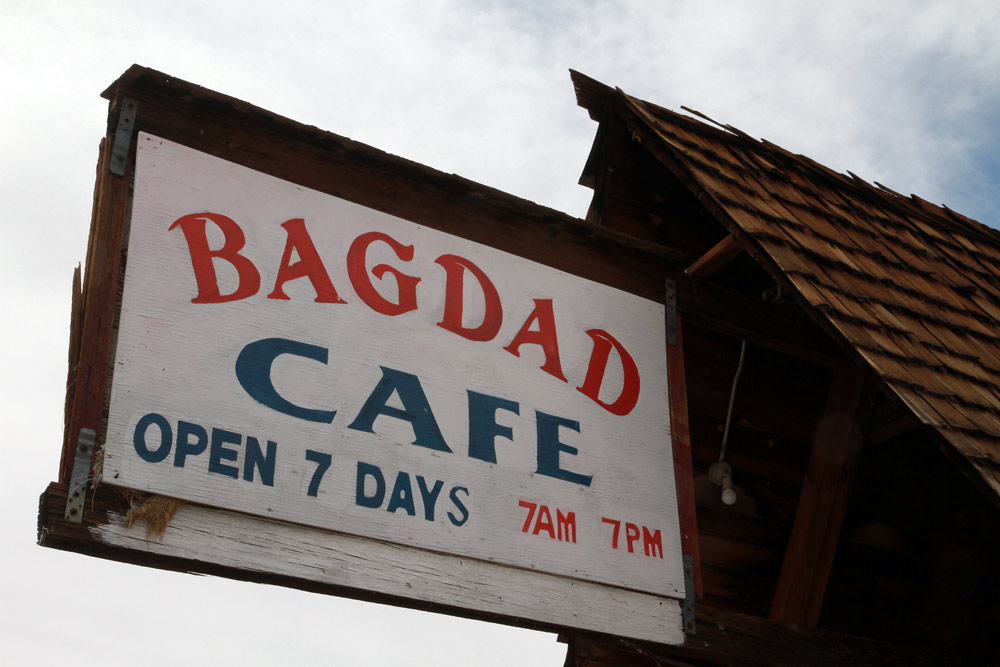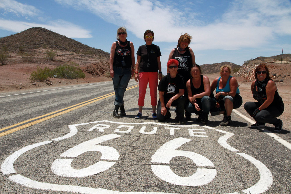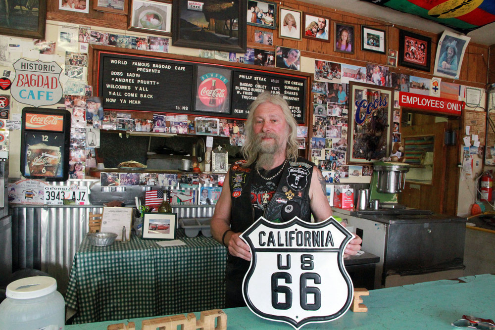 Z Las Vegas jsme se opět připojili na Route 66 a nastoupili cestu skrze poušť Mojave. Kromě horka, které však bylo v rámci pouštních norem snesitelné, nás dnes provázel silný vítr, a ten moc příjemný nebyl. Ale tradiční zastávky v Amboy a v Bagdad Cafe na sto procent splnily svůj účel. Jen kdyby malý prostor filmového Bagdadu zrovna neokupovaly dva autobusy plné francouzských turistů. Avšak díky této skutečnosti se všech šestnáct motocyklů (a motorkářů) naší výpravy stalo centrem pozornosti pařížských důchodkyň a jejich fotoaparátů :)