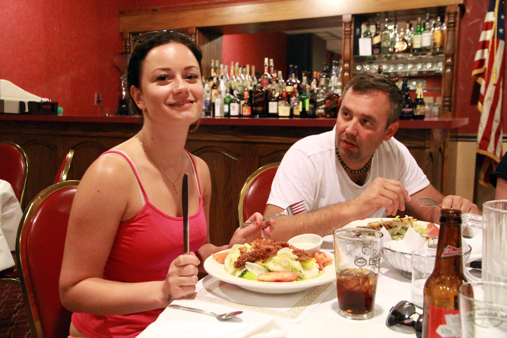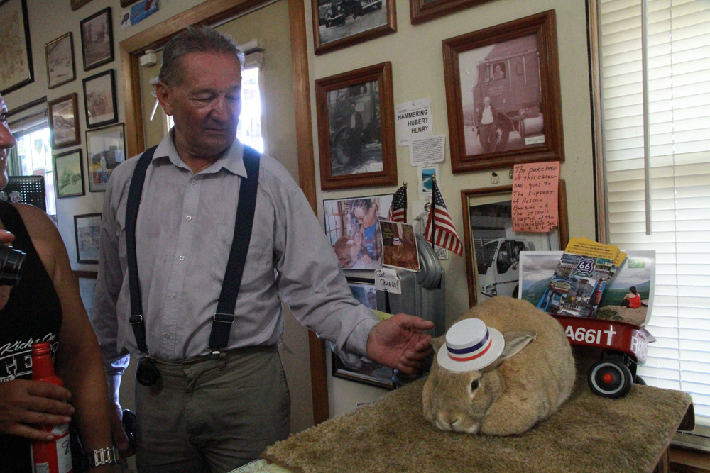 Zkontrolovali jsme i velkého milovníka králíků Riche Henryho na jeho Rabbit Ranchi a poobědvali v nejvyhlášenější restauraci Ariston Cafe. Jídlo bylo vynikající, stejně jako když tam před dvěma lety ve filmu Route 66 Revisited! náš šéfkuchař Jirka Vítek vařil hostům českou klasiku