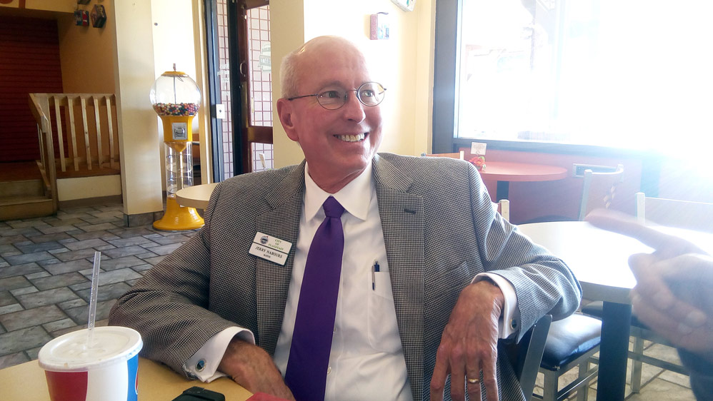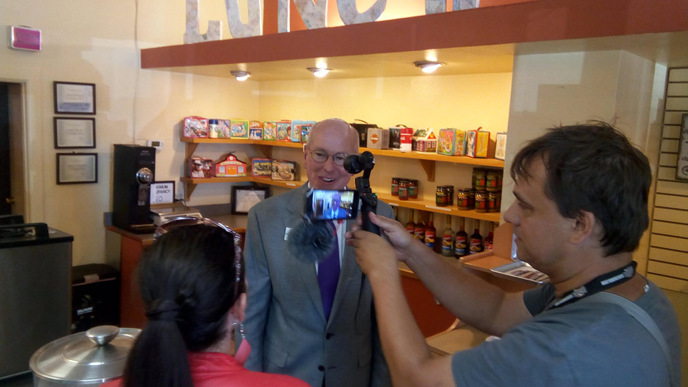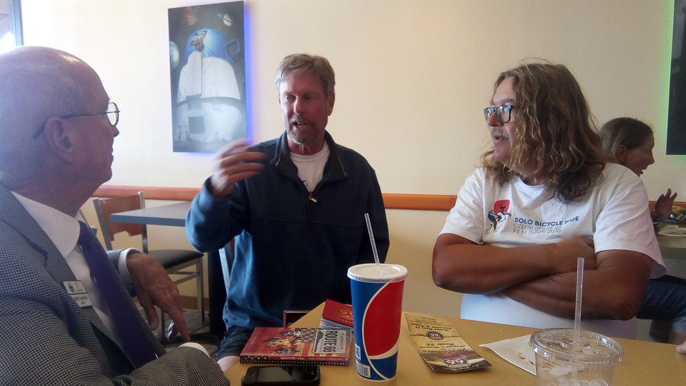 Přišel nás pozdravit i starosta města Flagstaff Jerry Nabours, kterého český cyklistický projekt velmi zajímá.