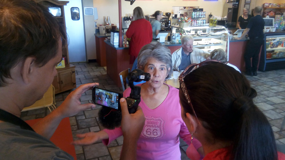 Po těžké etapě, jak jsem už avizoval, následoval volný den, a tak jsme rádi přijali pozvání na oběd od paní Sharlene Fouser, aktivní členky arizonské asociace Route 66 a také majitelky sympatické restaurace Jitters Lunchbox přímo na R66.