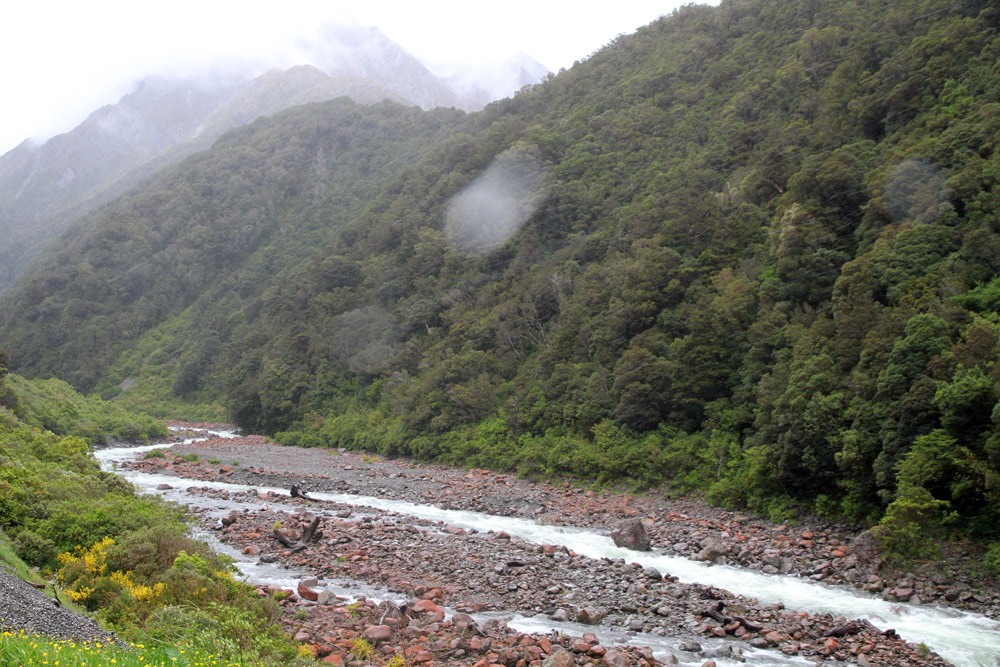 Každopádně: Dnešní jízda, i když v první části dost deštivá, nám naplno odkryla krásy Jižního ostrova Nového Zélandu. Nocujeme v průsmyku Arthur’s Pass, který je obklopen horami (zasněženými), loukami (zelenými), řekami (divokými), vodopády atd. Dál už snad nemusím ve výčtu pokračovat, fotky vám to řeknou samy. Tedy pokud se mi je podaří odeslat.
