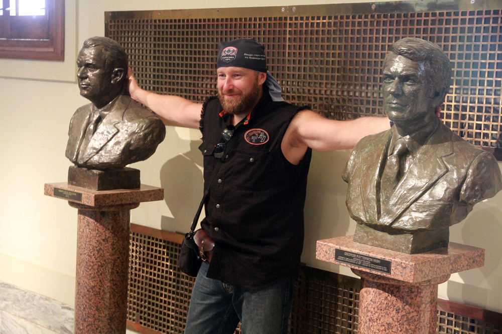 Ale dnešní etapa nakonec moc dlouhá nebyla, a tak jsme vše zvládli. I moc pěkné zastávky - v originál mexické restauraci, v oklahomském Capitolu, v místním Harleji a tak dále.