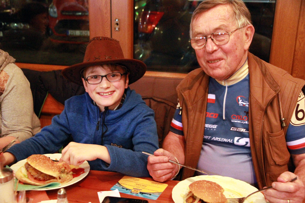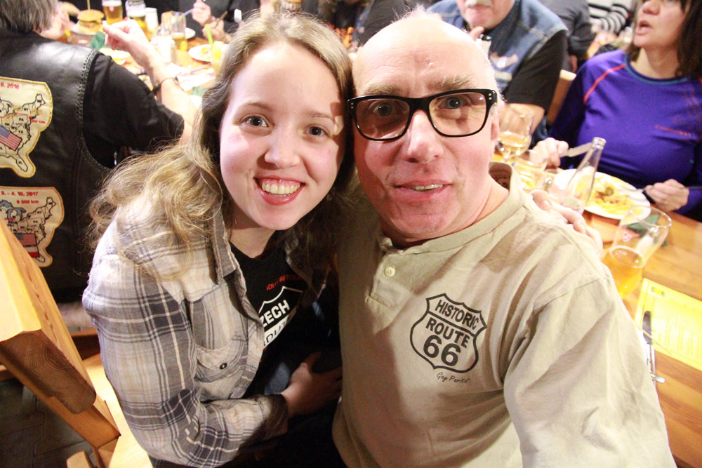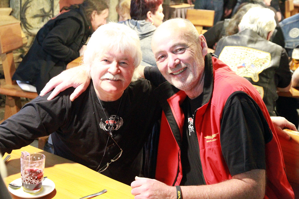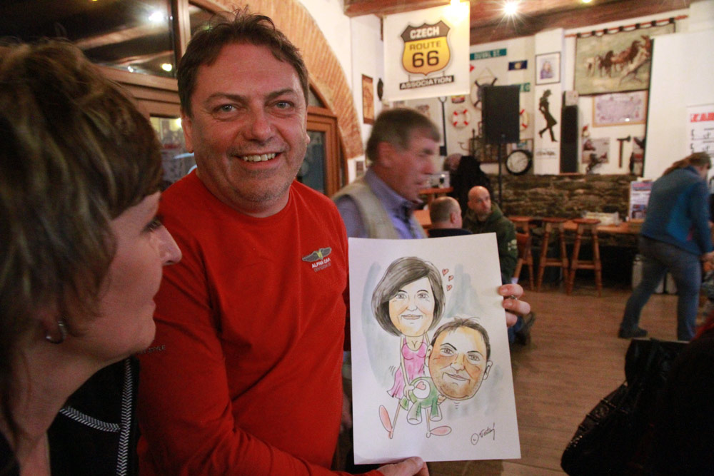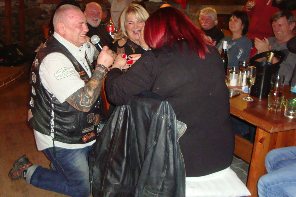 A to blahopřání máme ještě jedno: Náš kamarád a legendární šéfkuchař z filmu Route 66 Revisited! Jirka Vítek zcela neočekávaně (a před zraky celé té velké sešlosti) požádal o ruku svoji dlouholetou partnerku Ivu Vokounovou! Za velkého aplausu byla jeho žádost přijata.