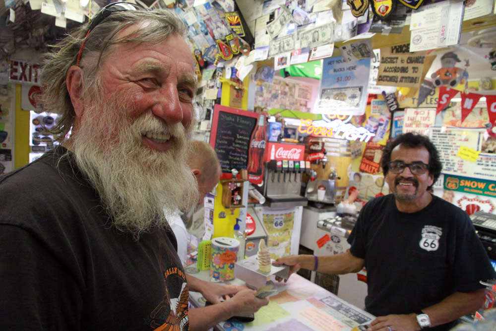 Dnešní Arizona nám následně připravila další pěkné chvilky v Seligmanu, kde se před lety zrodila první asociace Route 66 vůbec. A to díky místnímu holiči Angelu Delgadillovi, který se dodnes raduje z toho, jak mu "jeho" Route 66 vzkvétá.