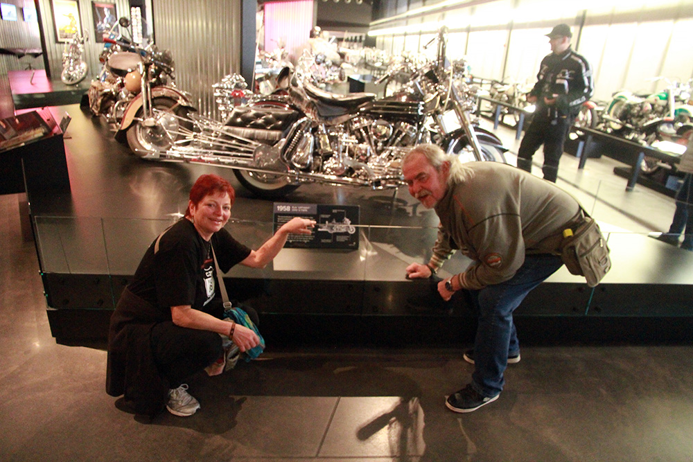 Po první noci našeho jarního turné nastal pravý rouťácký šrumec. Ranní návštěva muzea Harley-Davidson neměla ani tentokrát jedinou vadu či chybu. Ať už vidíte drahocennou kolekci „haryků“ poprvé nebo po dvacáté, je to stále paráda.