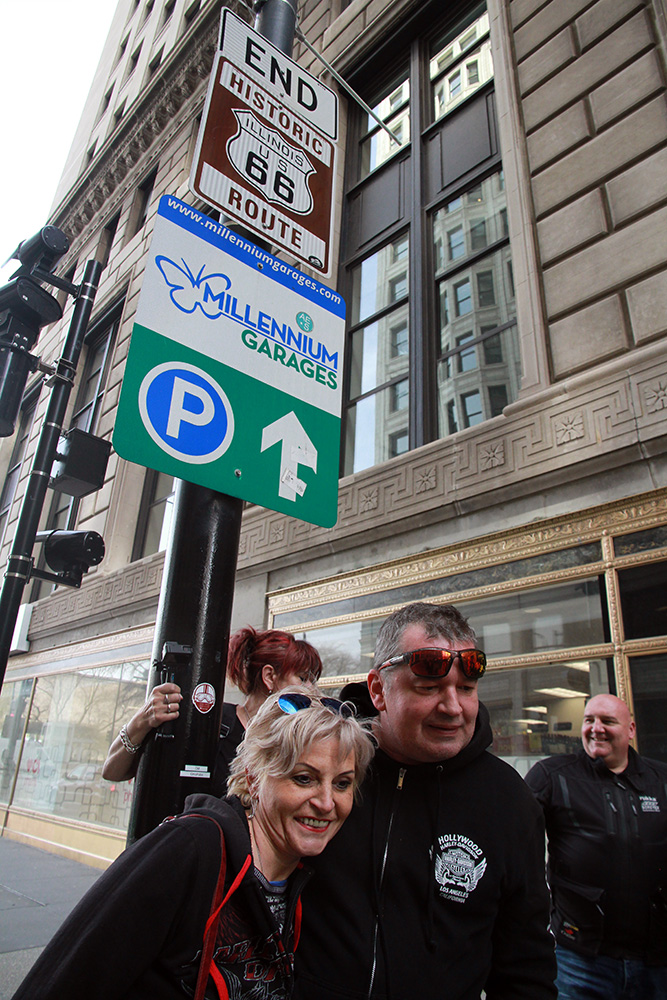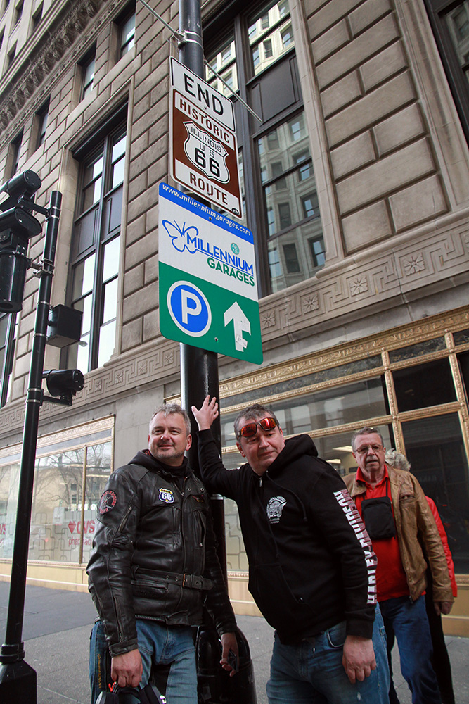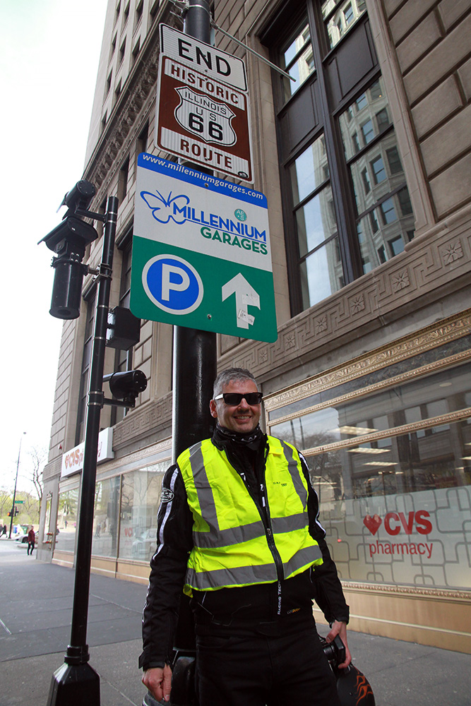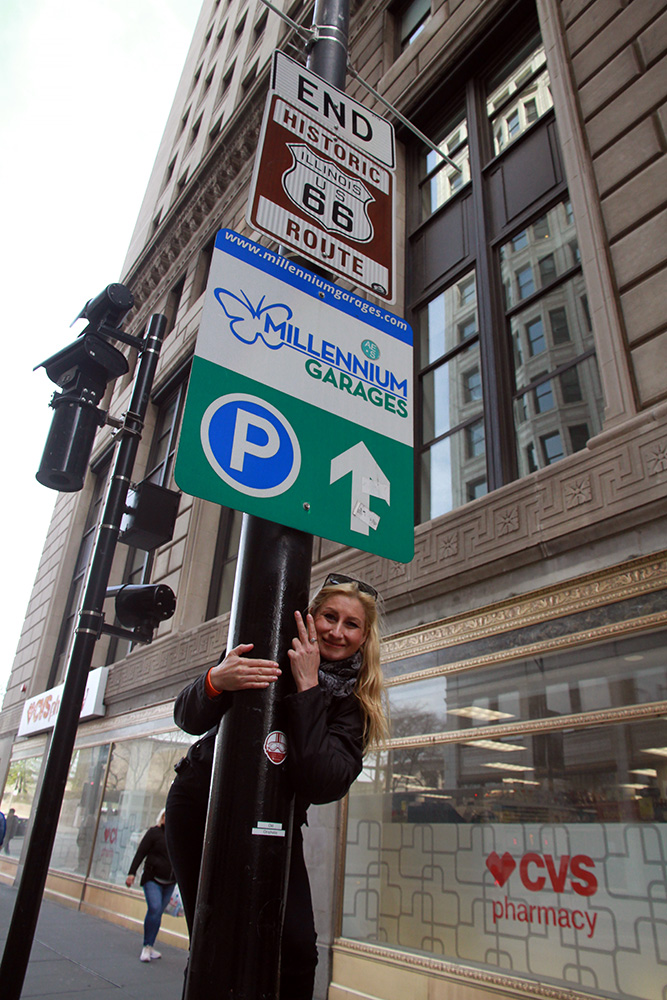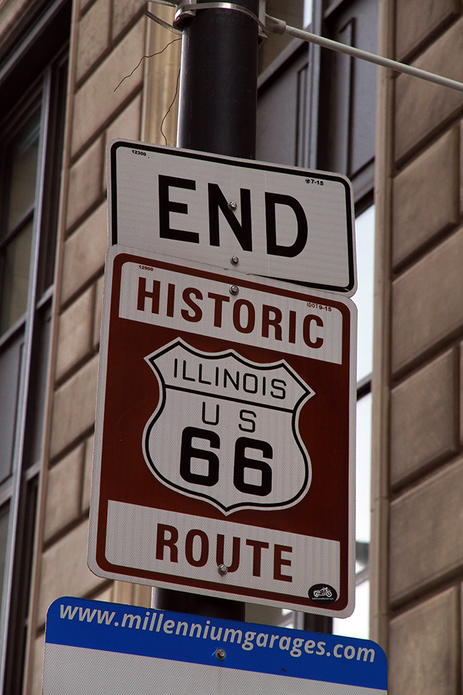 Musím říci, že nevyzpytatelná dopravní situace nám tenrokrát byla velmi příznivě nakloněna – už krátce před třetí hodinou pózujeme před legendární cedulí, která označuje začátek (případně konec) Route 66. I ze samého centra Chicaga jsme se poměrně statečně a svižně propletli rušnými ulicemi až do místa našeho dočasného pobytu - Jolietu.