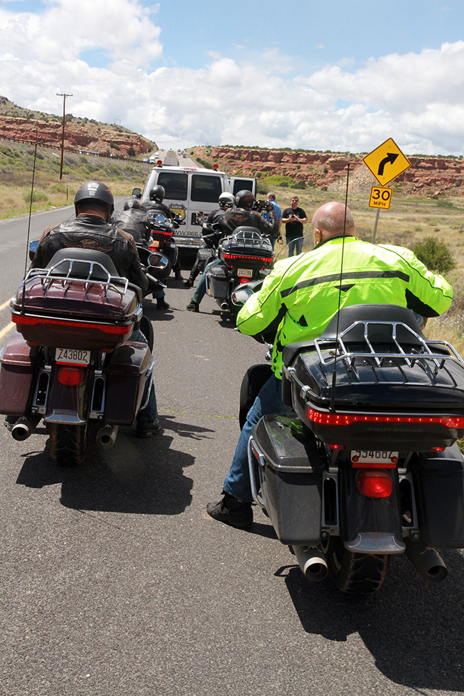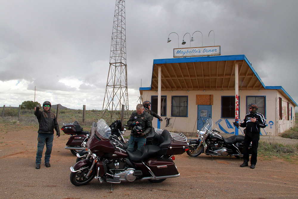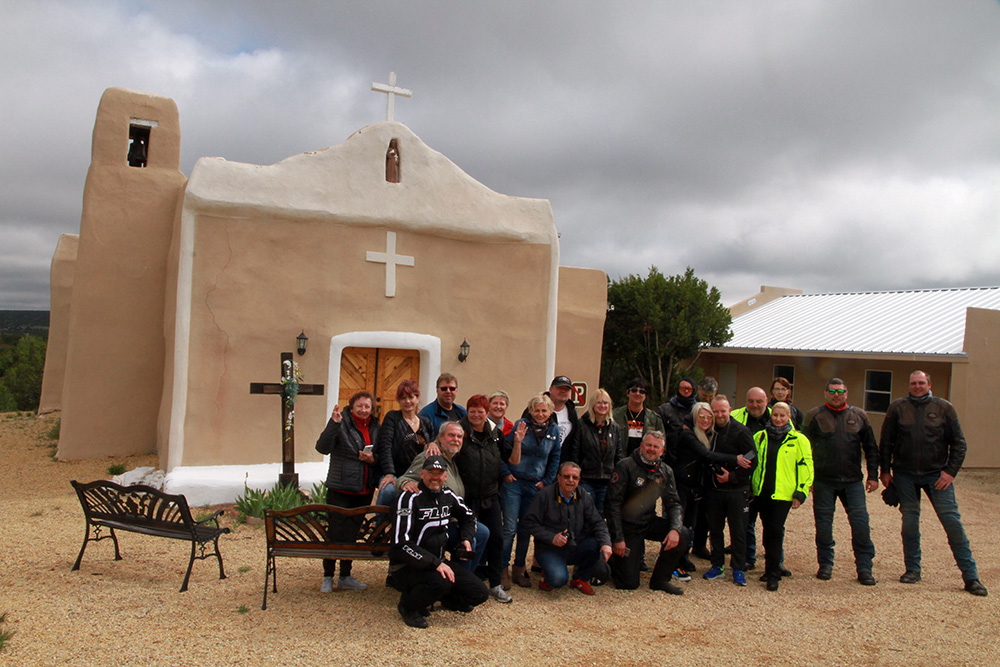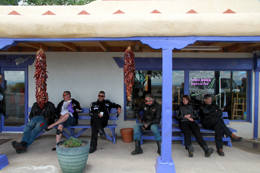 Kousek za Santa Fe leží město Madrid, dějiště zásadní části slavného filmu Wild Hogs, nebo-li Divočáci. Naše chrabrá motoristická eskadra nemohla nevyužít příležitosti na chvíli zastavit a zvěčnit se právě zde. I když jsme Johna Travoltu v těchto místech dneska nepotkali, bylo to bezva.