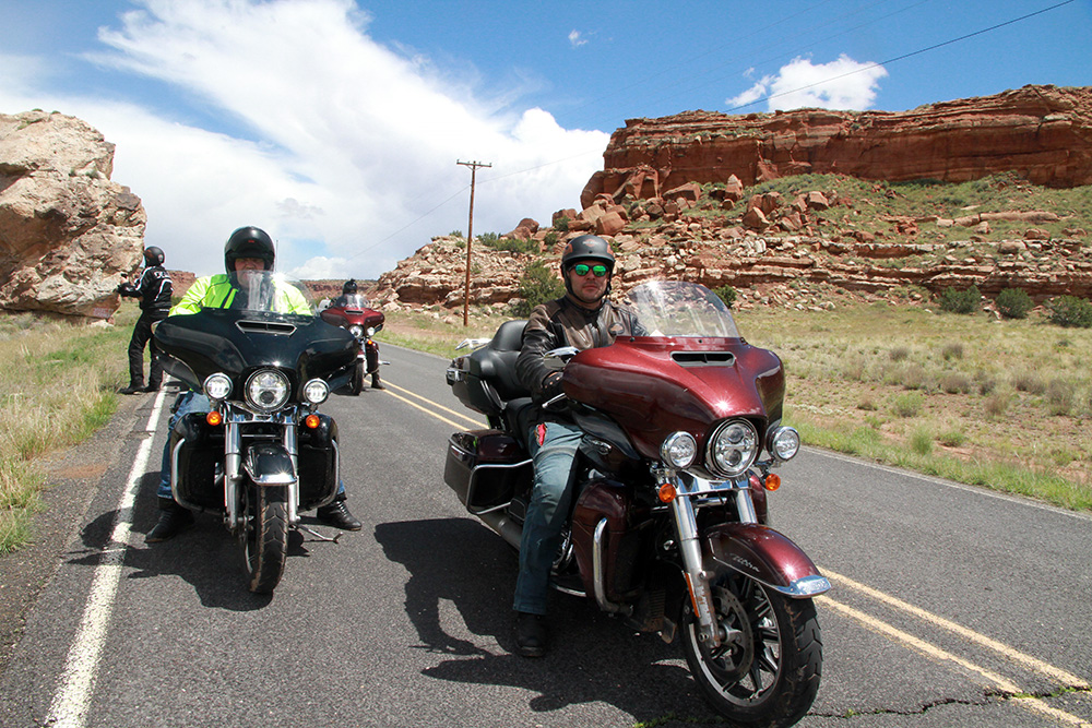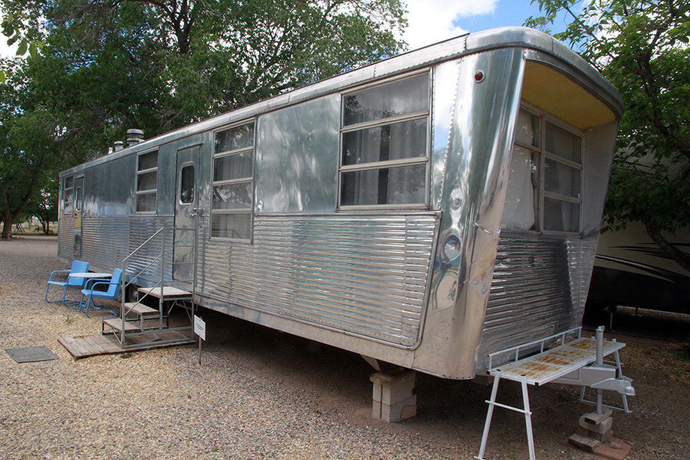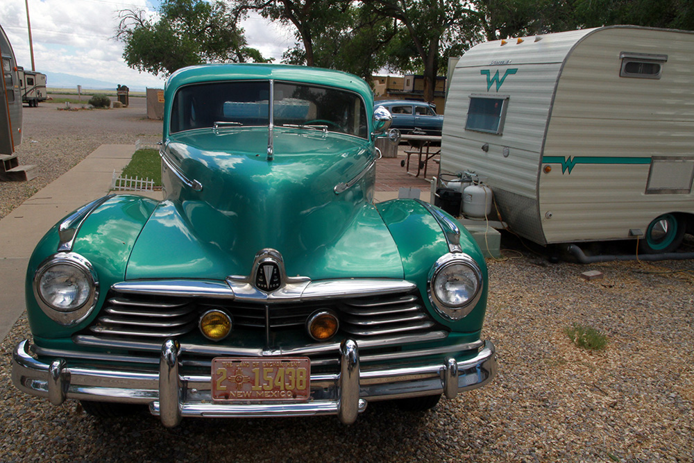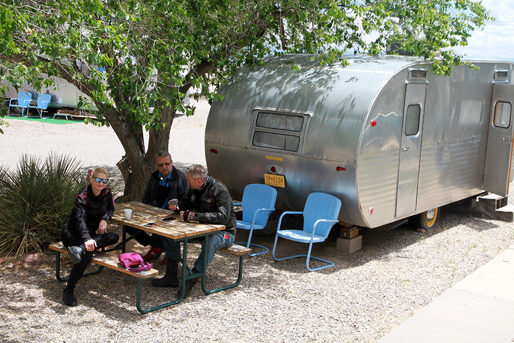 Bezva je i krajina, kterou projíždíme. Území Navajů poskytuje mnoho úchvatných pohledů – na široširou prérii, indiánská obydlí, kostelíky i bary, červená skaliska a tak dále. Navštívili jsme samozřejmě i tradiční rouťácká místa: například Enchanted Trails RV Park s unikátní sbírkou historických karavanů nebo symbolické rozvodí Ameriky Continental Divide.