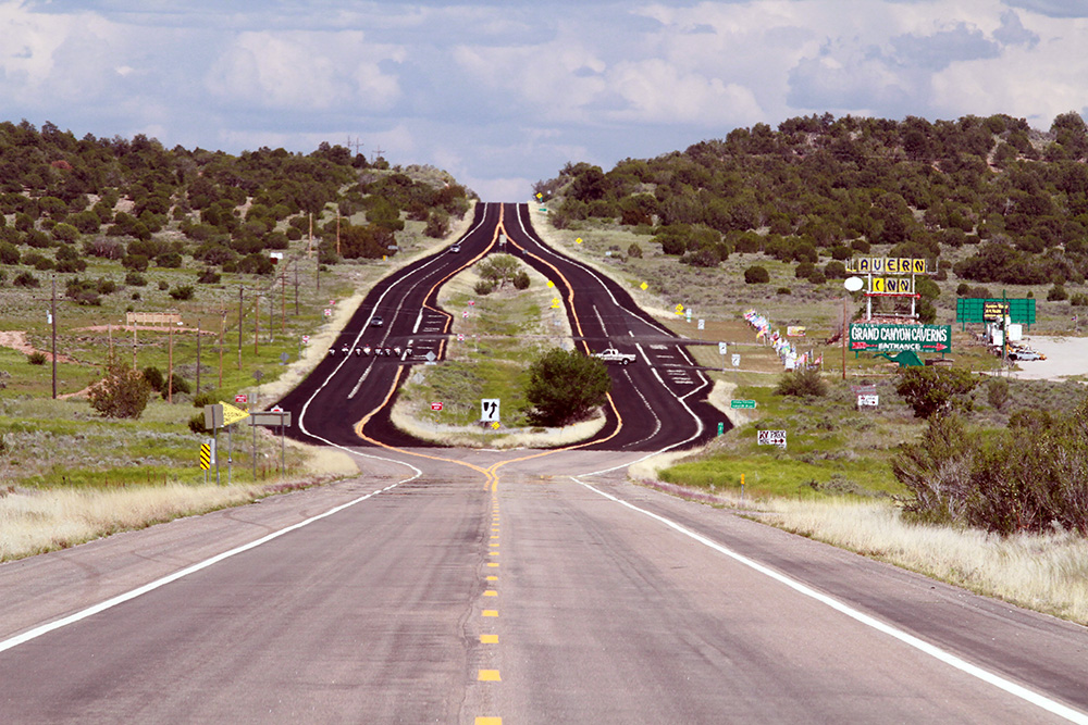 Skvělá byla i jízda ze Seligmanu do Kingmanu, kde si to každý motorista báječně užívá bez ohledu na to, jestli na harleji nebo třeba v kabrioletu.