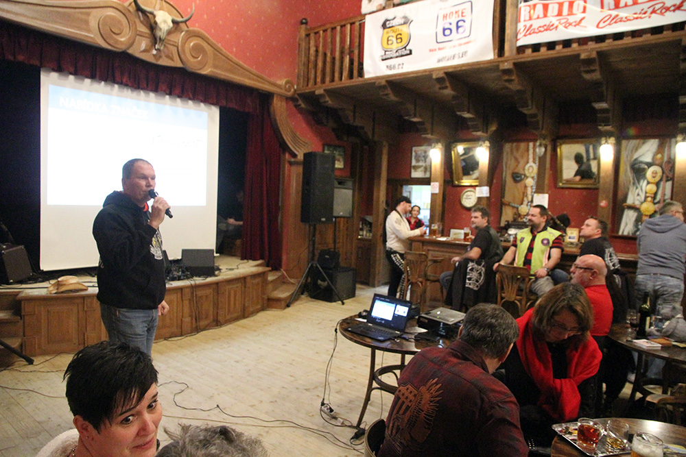 Celý boskovický salloon ani nedutal při prezentaci letošního Mezinárodního festivalu Route 66 ve Zlíně, na který svou přítomností ozdobí například viceguvernér státu Oklahoma Matt Pinell, či známá osobnost Route 66 Jim Hinckley. Oba dva pánové pozdravili účastníky srazu osobním videopozdravem.