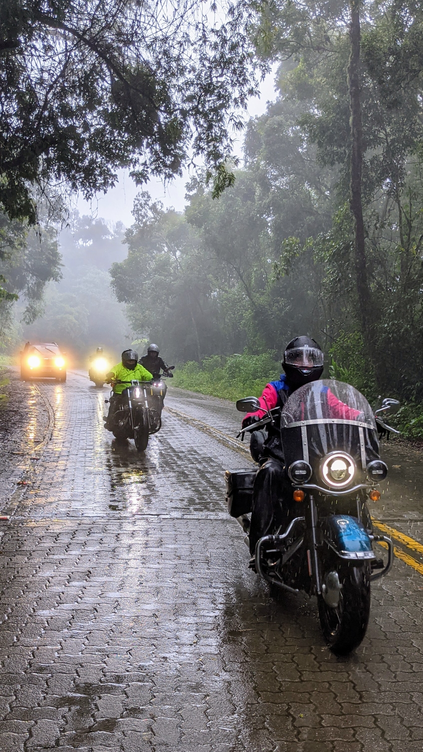 I když počasí nebylo úplně zářivé, jízda to byla kouzelná. A jak takový bonus na závěr - náročný sjezd po dlaždicové silnici až do oblíbeného přímořského střediska Paraty. Zde spíme dvě noci, takže ráno nebalíme